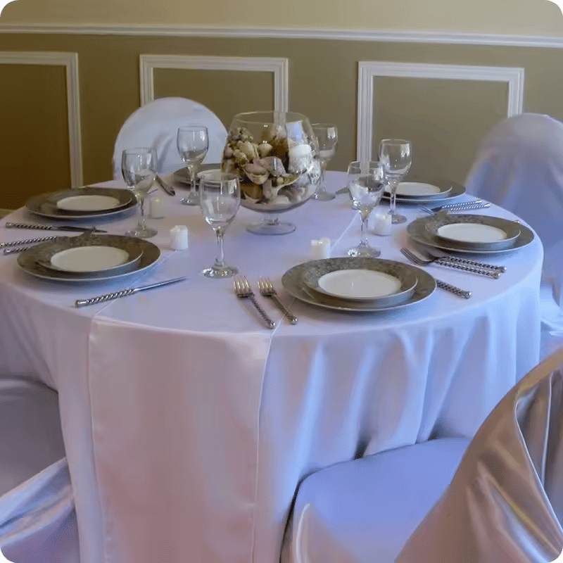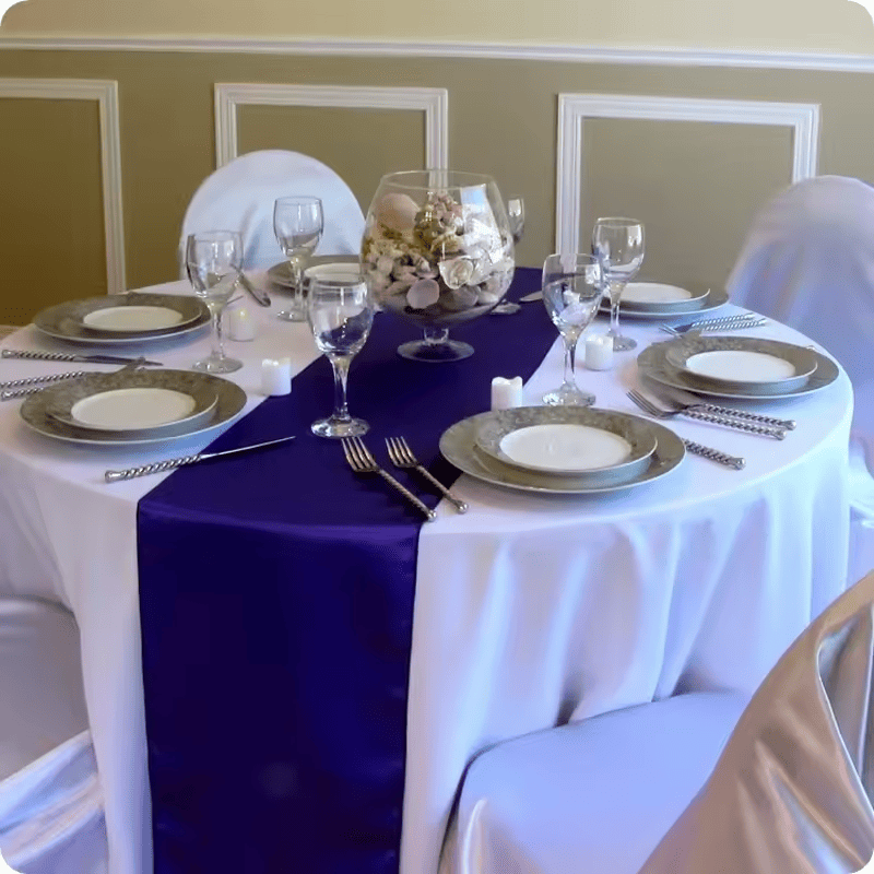 Perfect for weddings, parties, or any celebratory event, its rich satin fabric in royal blue creates a sophisticated atmosphere.